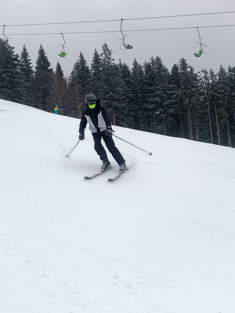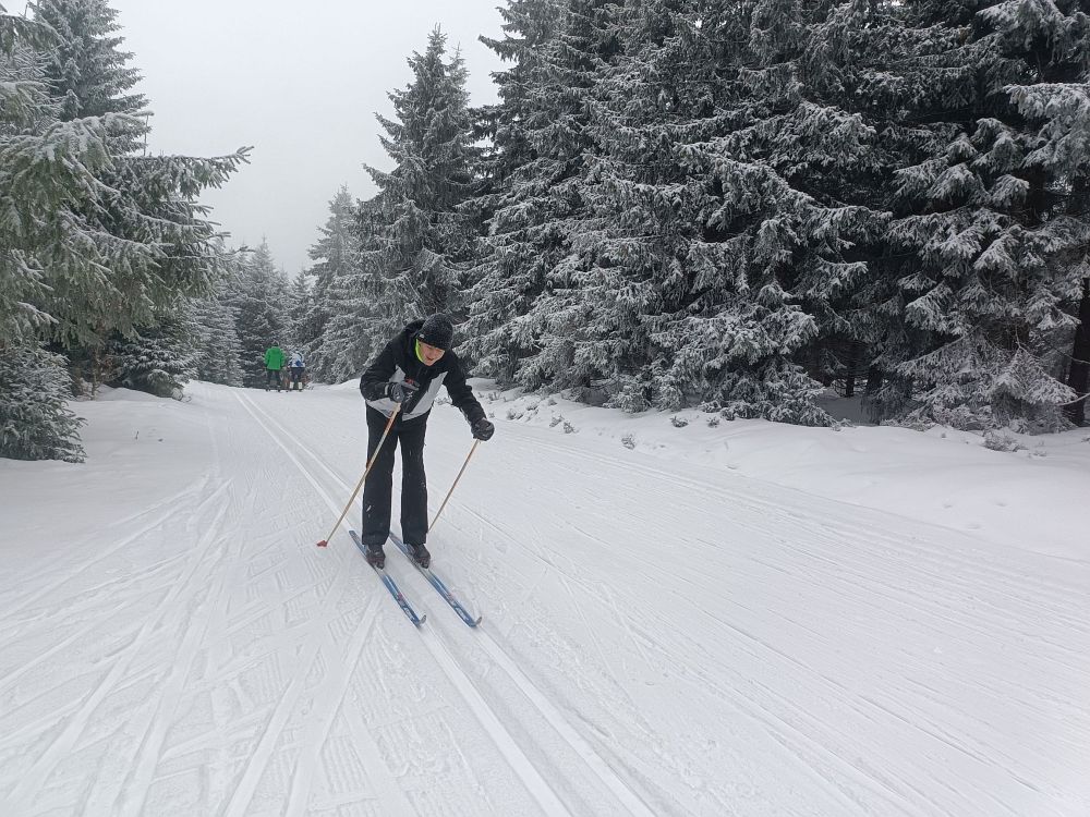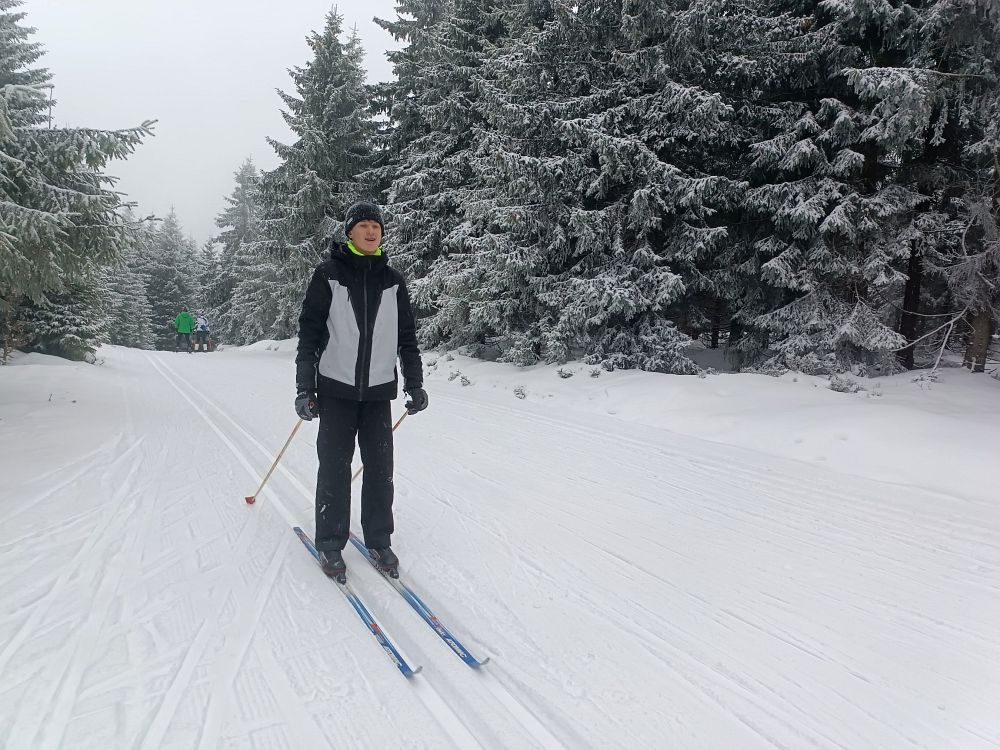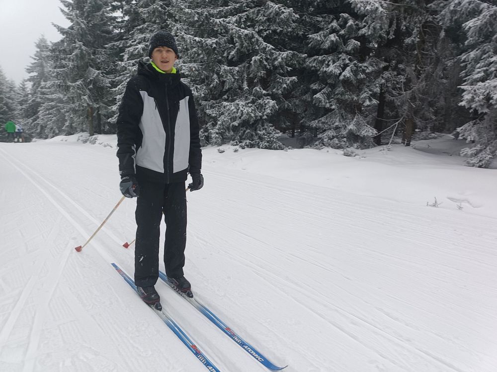 Synovec Simon letos opět přijel na několik málo dnů na lyže. Loni tu ve svých 15ti letech stál na lyžích poprve v životě. První jízdy byly opatrné ale druhý den už jezdil pěkně. Je tvrďák a tak ho neodrazují ani strastiplné cesty na sjezdovku a pak lesem zpět na Boženku. Letos vyzkoušel i běžky. Určitě se mu to muselo moc líbit. Německy sice moc nerozumím, ale šajze je podobný slovu šén, a o tom vím že to je “krásný”. Celý den opakoval “šajze bezky” 🤣